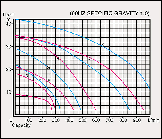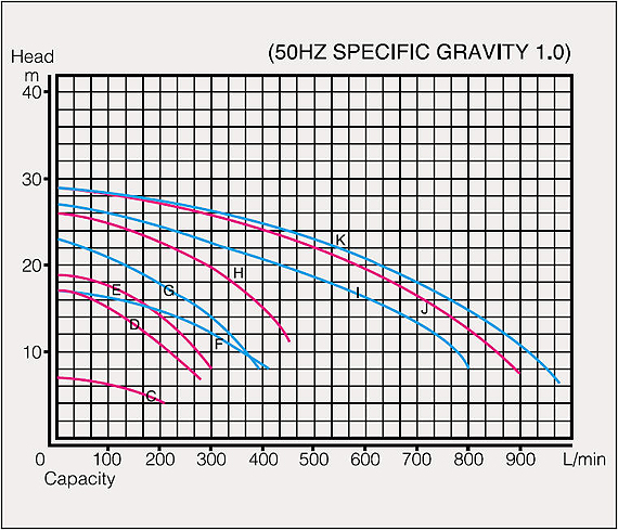 | Model | CURVES NO. | Full head(M) | Full flow amount(L/MIN) | Head(M) | Flow amount(L/MIN) | In/out diameter(m/m) | Power | Weight(KG) | ||