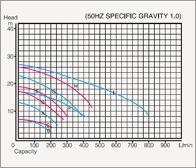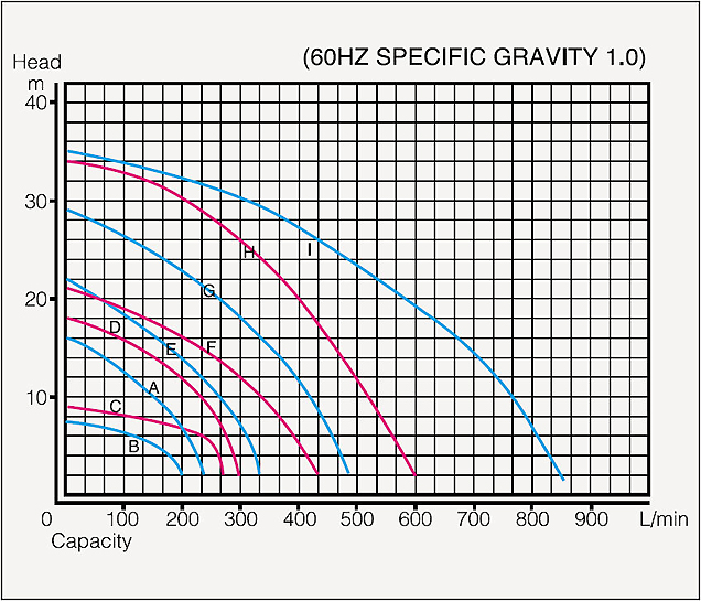 | Model | CURVES NO. | Full head(M) | Full flow amount(L/MIN) | Head(M) | Flow amount(L/MIN) | In/out diameter(m/m) | Power | Weight(KG) | ||
