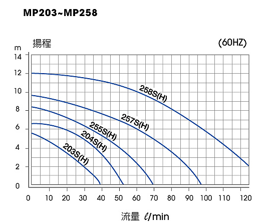 | 60Hz | (L/min) | 38 | 52 | 70 | 97 | 135 | |