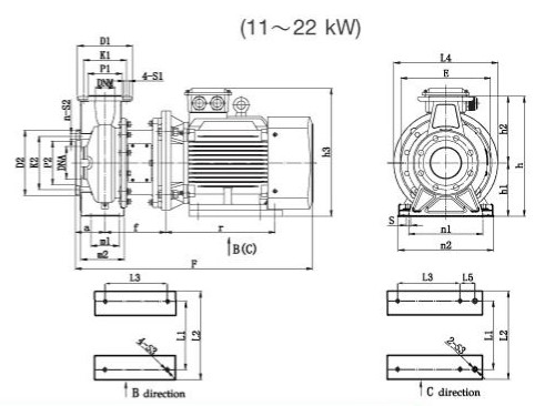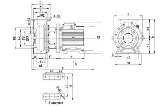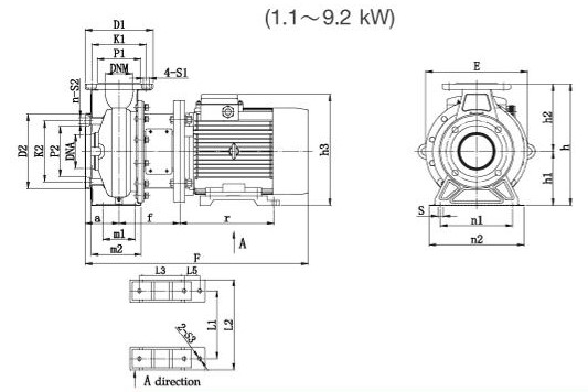 NXF2(A) | E | F | h | h1 | h2 | h3 | a | m1 | m2 | n1 | n2 | S | L1 | L2 | L3 | L4 |